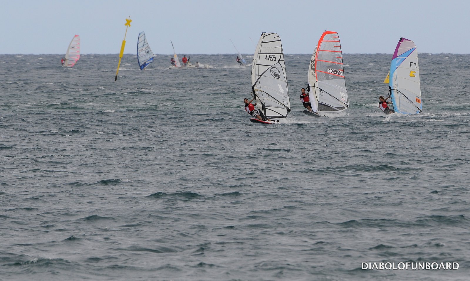 Bien que le vent montre des signes de faiblesse en direction et intensité les poules de qualification se passent sans complication.