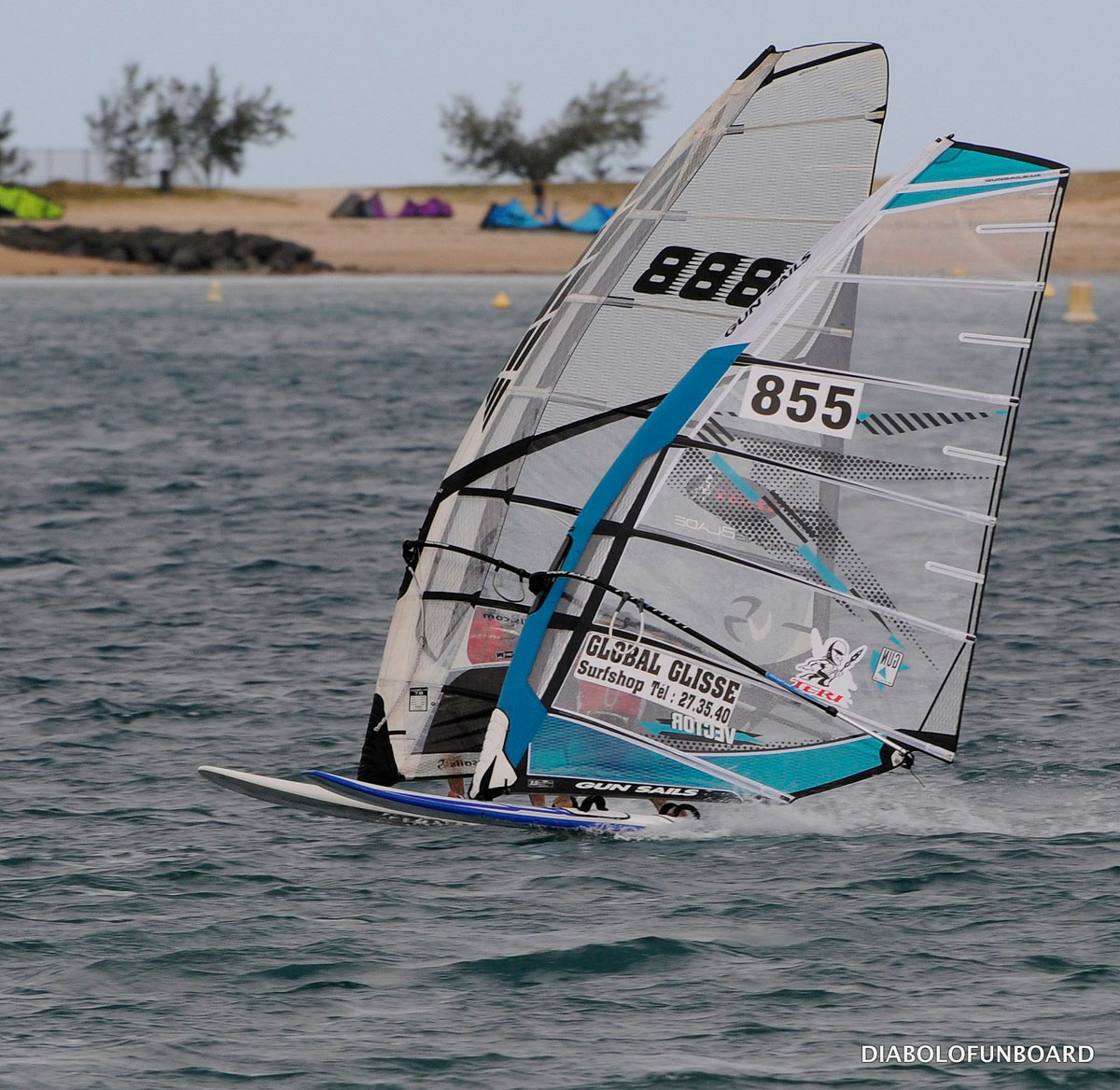 A noter pour l’anecdote que Nicolas Goyard, décidément en grande forme, se paie le luxe de terminer 3ème de sa qualification alors qu’il n’avait plus de bout de harnais tribord (cassé lors de la remontée sur la ligne de départ) et après avoir été 1er jusqu’à la dernière ligne droite.