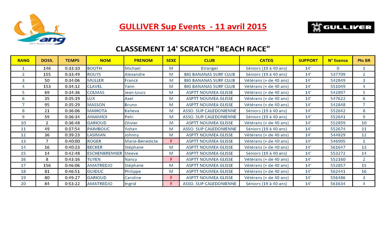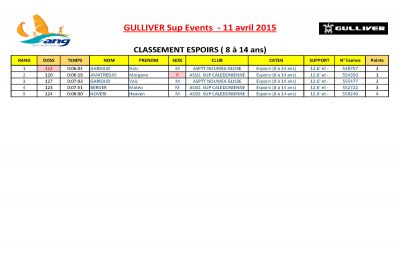 CONTREX Paddle Tour 2015 "les résultats du GULLIVER SUP EVENTS"